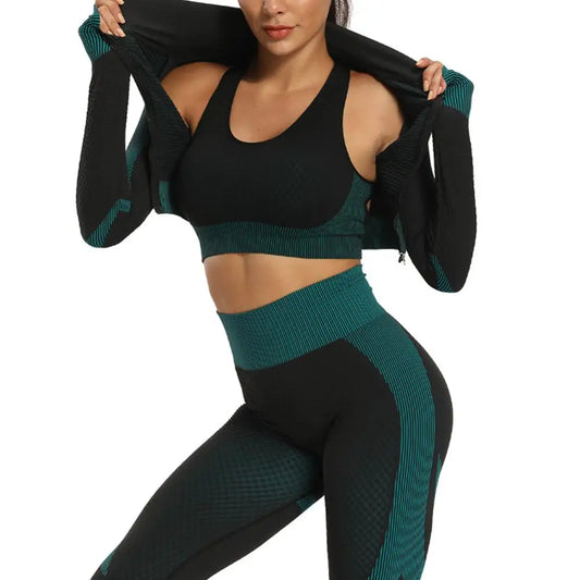 2020 Gym Set Women Plus Size Workout Clothing Seamless High Waist Leggings+Long Sleeve Suit Fitness Sport Bra Yoga Wear Sets 2XL